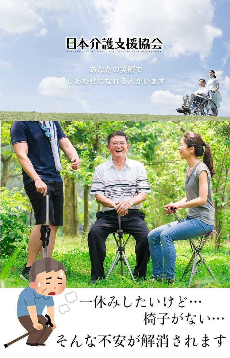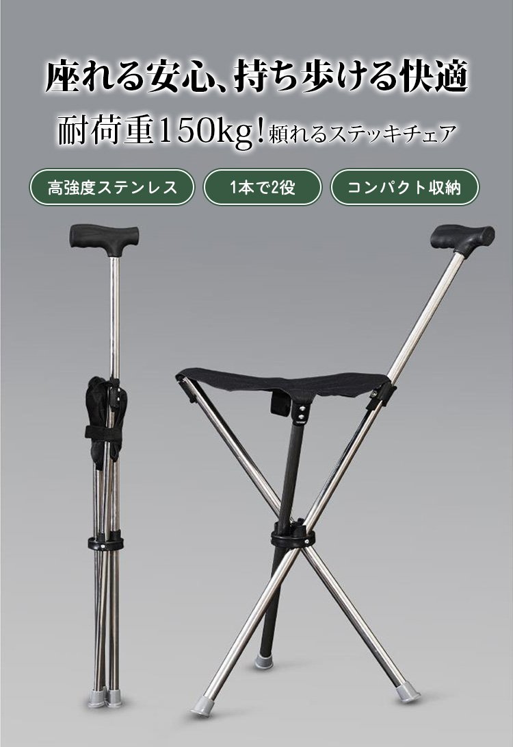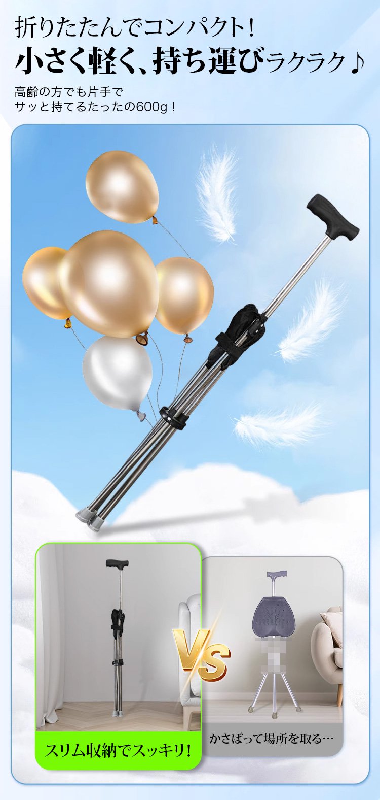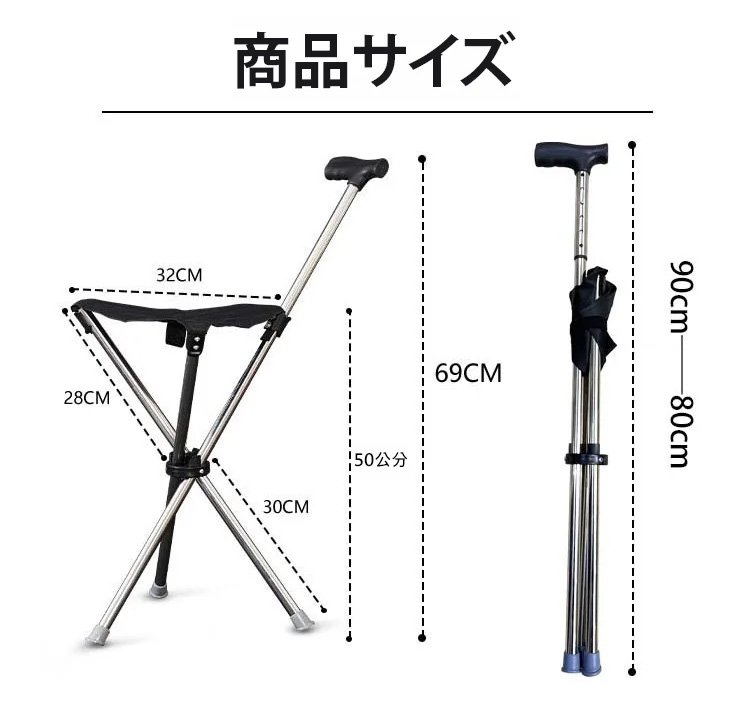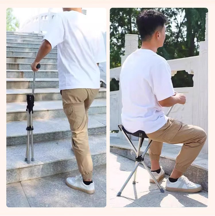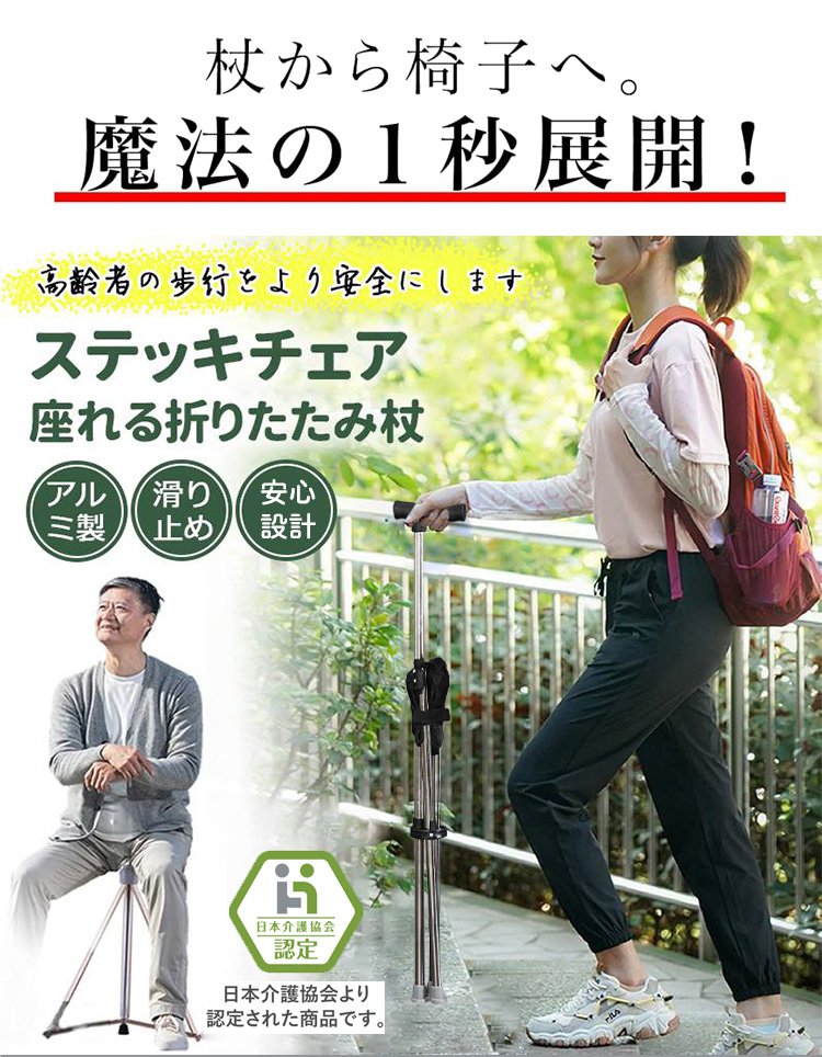 1秒で椅子に変わる杖、いつでもどこでも休憩可能!5段階調整可能、140cmから190cmまで対応!