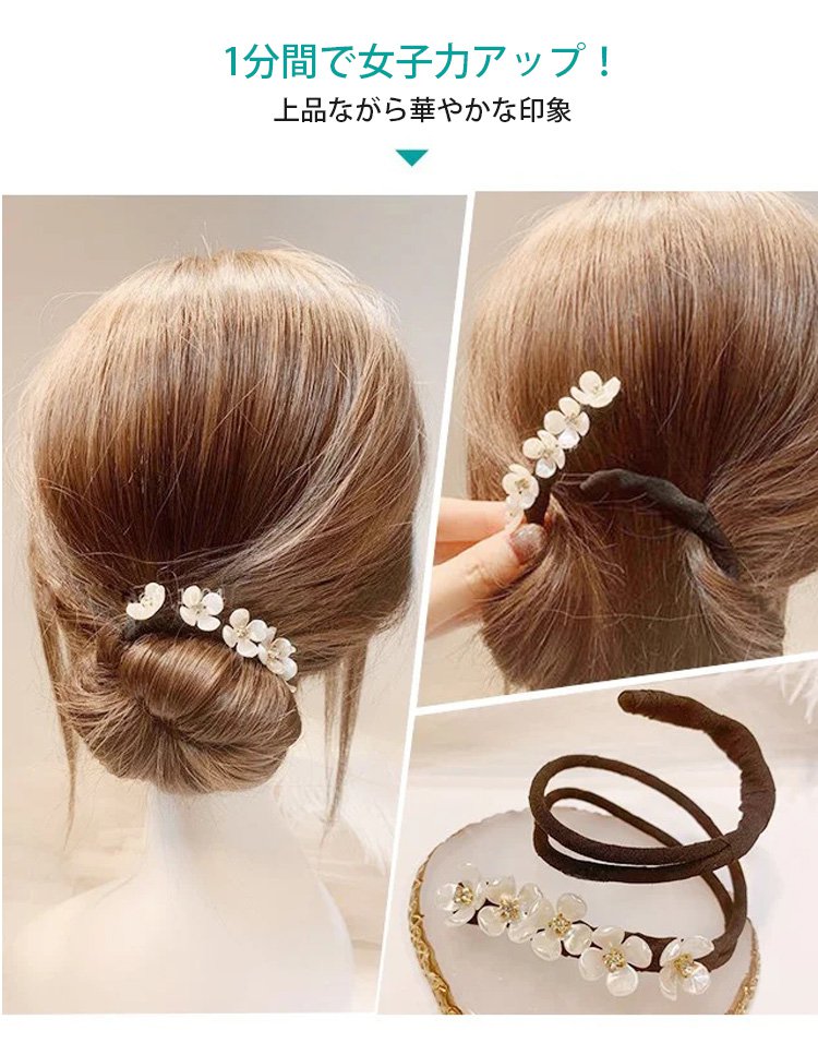 【パール付きお団子ヘアメーカー】超簡単!はさんで巻くだけ!不器用さんでもかんたん可愛いお団子ヘア!